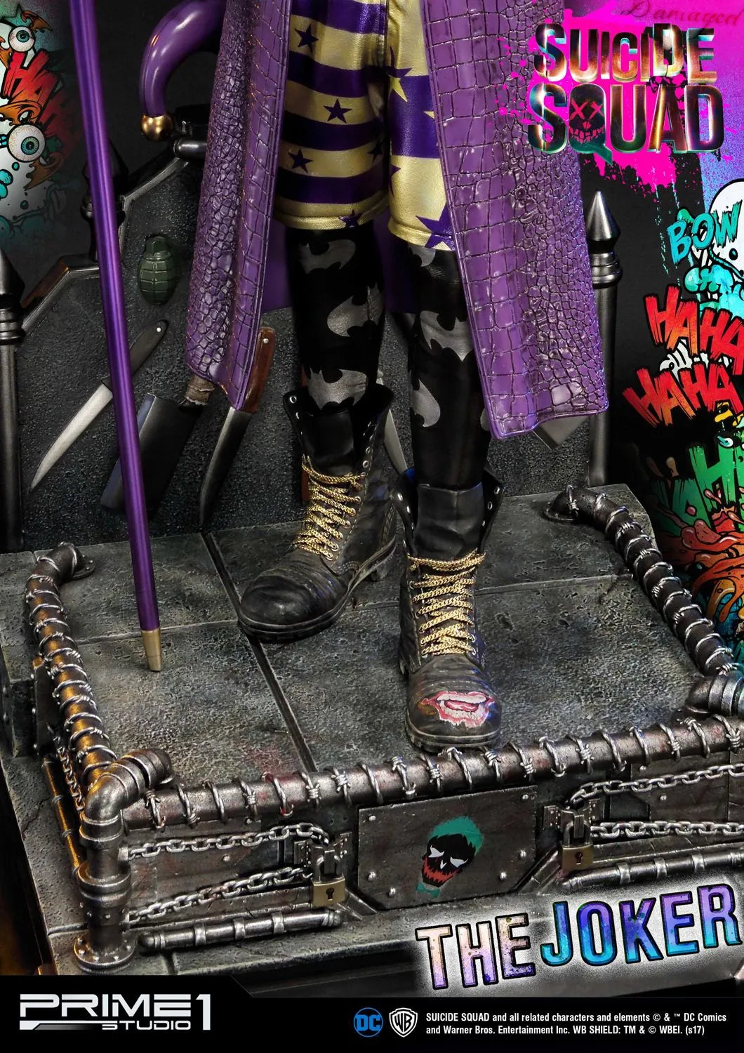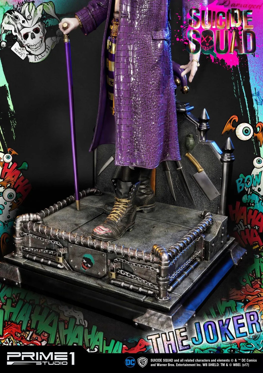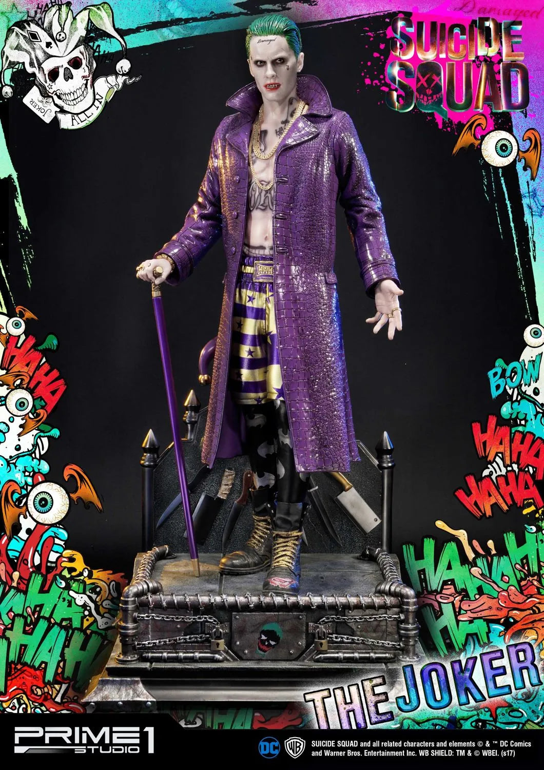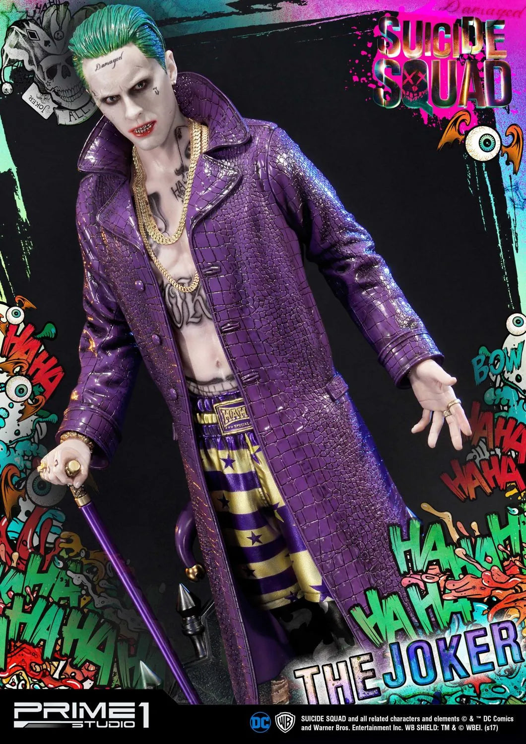 A Prime 1 Studio tem o orgulho de apresentar MMSS-03: O Coringa do filme Esquadrão Suicida (2016). O Coringa é um criminoso psicopata extremamente formidável e infame de Gotham City, estando no topo do submundo do crime da cidade, sendo muito temido por outros chefes do crime. Desprovido de empatia ou piedade por qualquer um que participe de seus esquemas malignos, seja por intimidação ou fraude, o Coringa, no entanto, adora sua namorada e parceira no crime Harley Quinn, fazendo o máximo para resgatá-la do Esquadrão Suicida e das garras de Amanda Waller, com sucesso eventual. O Coringa também é o arqui-inimigo de longa data do Batman e o assassino do protegido deste, Robin, Jason Todd, junto com Harley.